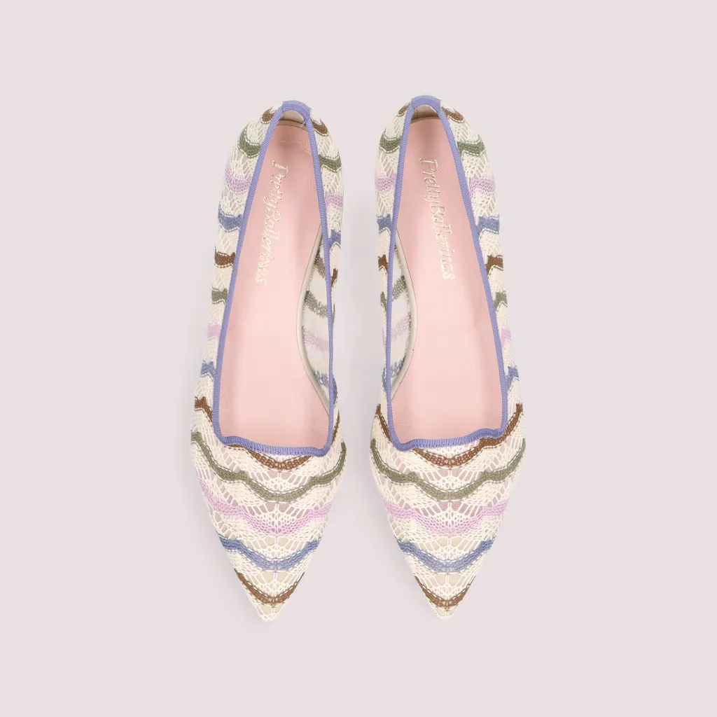 נעלי לאופרס מטקסטיל תחרה בפסים ורוד כחול אפור חום. עם סרט כחול וחרטום שפיץ. בדגם זה מומלץ להזמין חצי מידה יותר מהרגיל