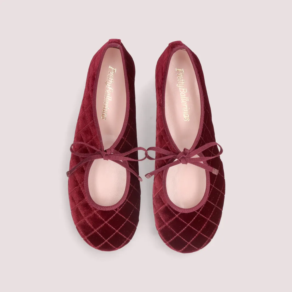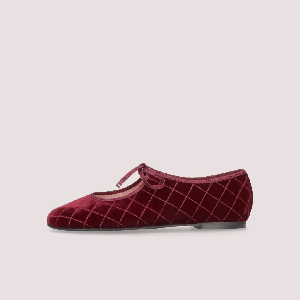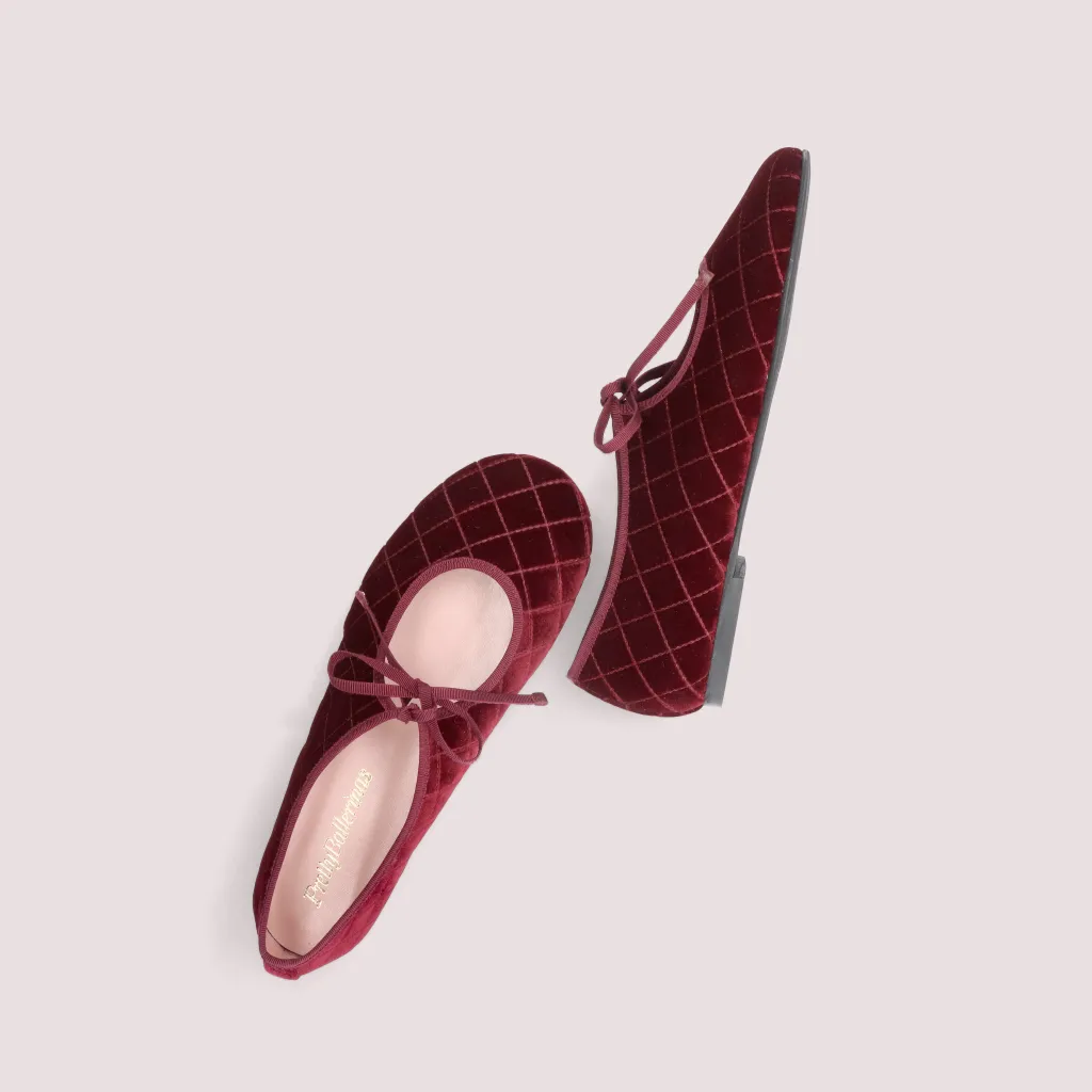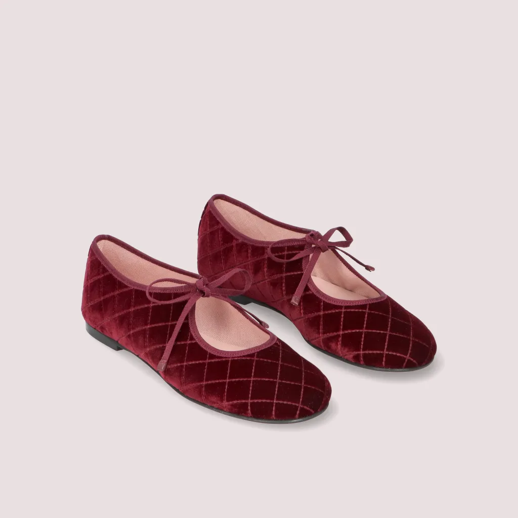 נעלי בלרינה מקטיפה בצבע בורדו עם תיפורים וסרט ושרוך בבורדו