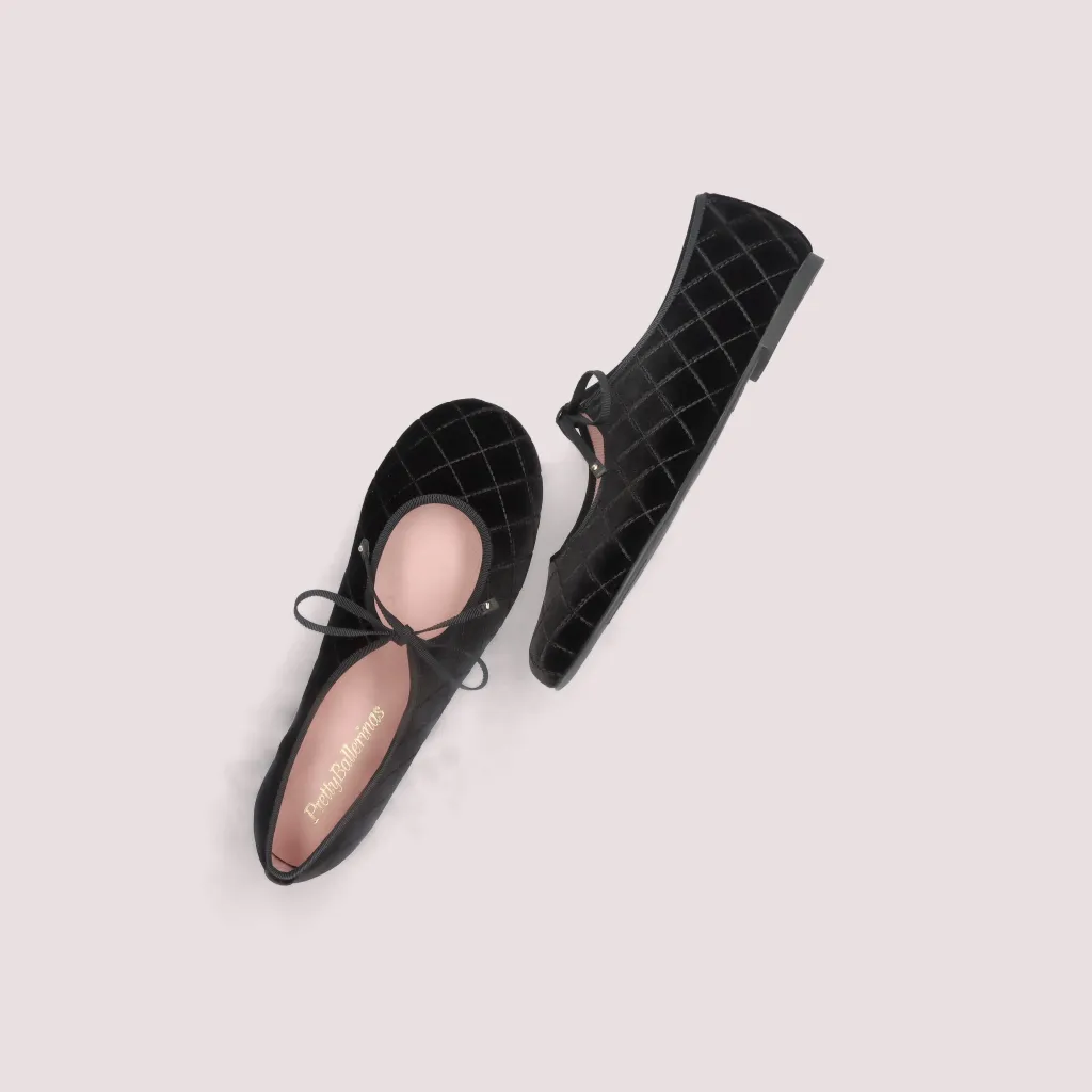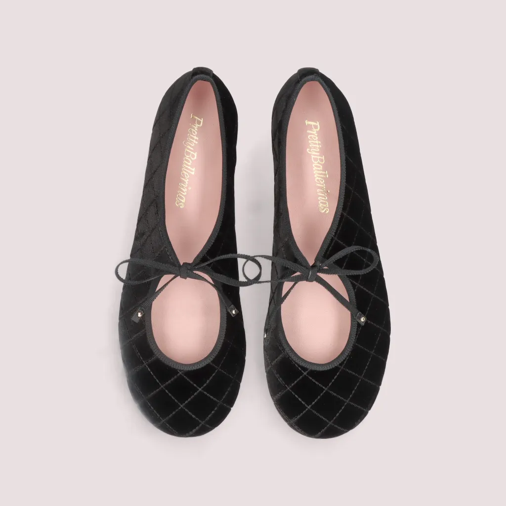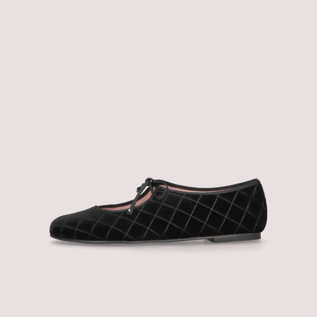 נעלי בלרינה מקטיפה בצבע שחור עם תיפורים וסרט ושרוך בבורדו