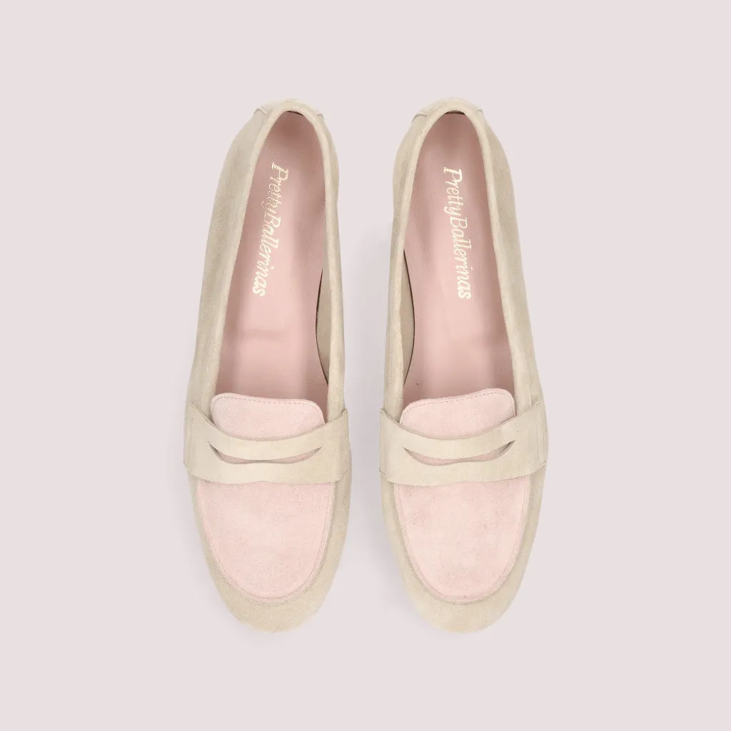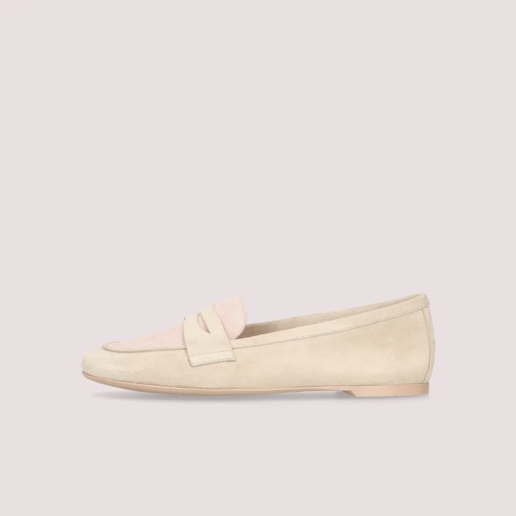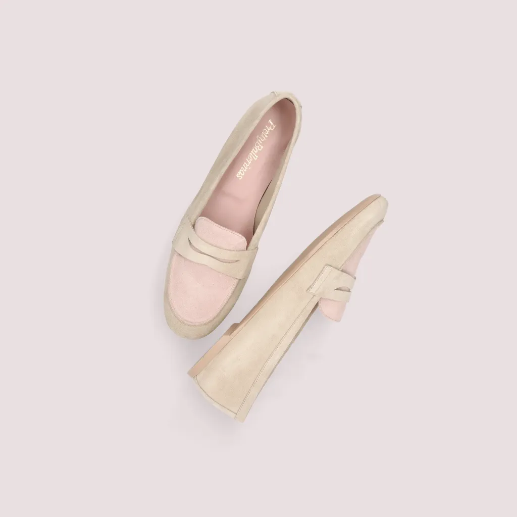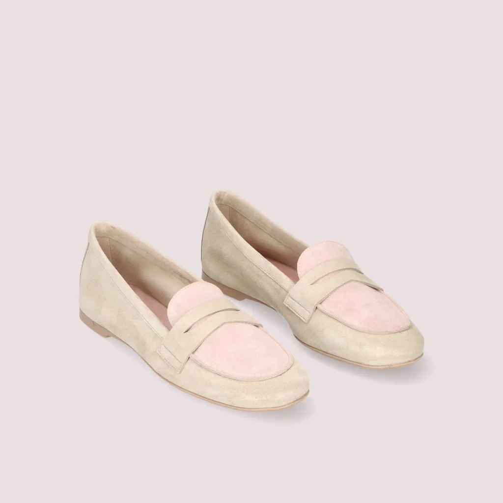 מוקסין מעור זמש בצבע אבן בשילוב צבע ורוד