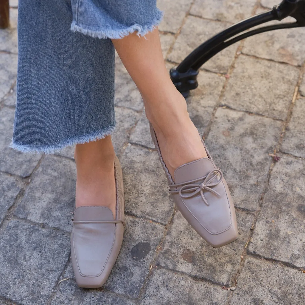 מוקסין מעור מט בצבע חאקי עם סרט קשירה מסביב לנעל יוסיפו צבע ואופי ייחודי לארון הנעליים שלך, למראה יוo-יומי מלא סטייל