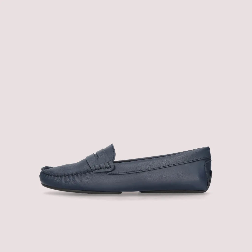 מוקסין מעור מאט בצבע כחול ורצועת קישוט קדמית רחבה תואמת