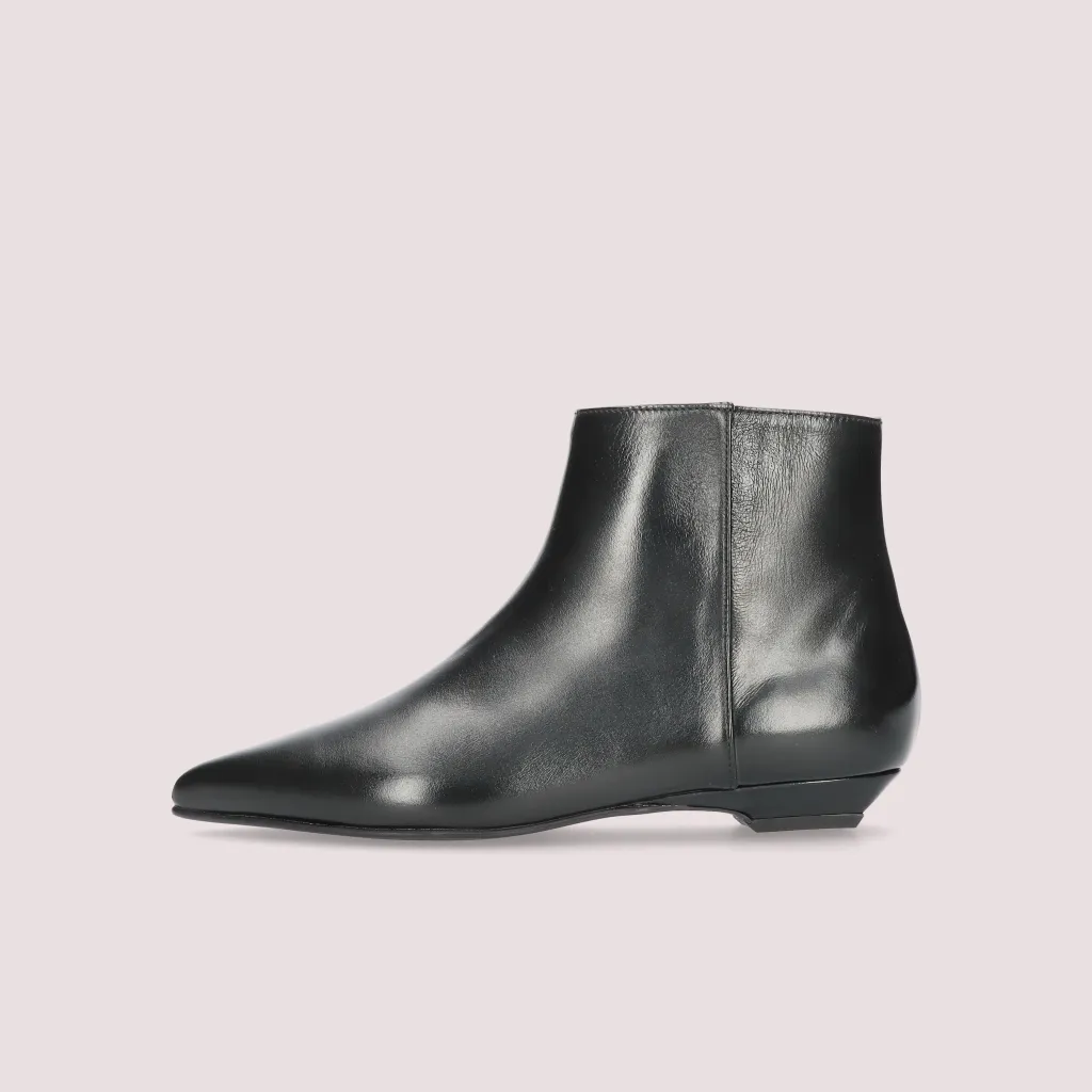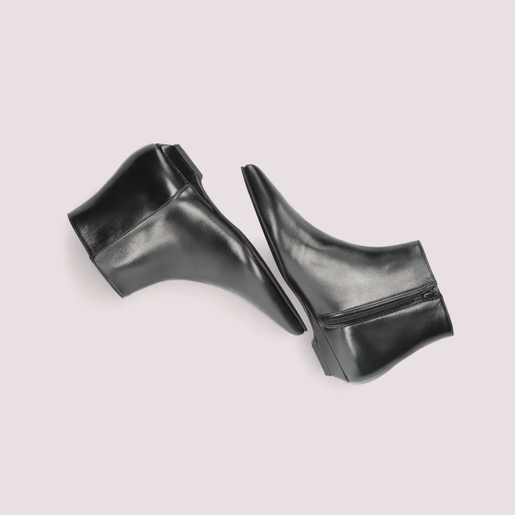 מגפון מעור מט שחור עם ריץ’ רץ’. עם עקב בגובה של 2 סמ’ וחרטום שפיץ. בדגם זה מומלץ להזמין חצי מידה יותר מהרגיל