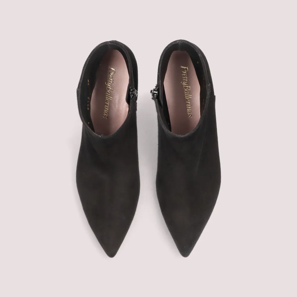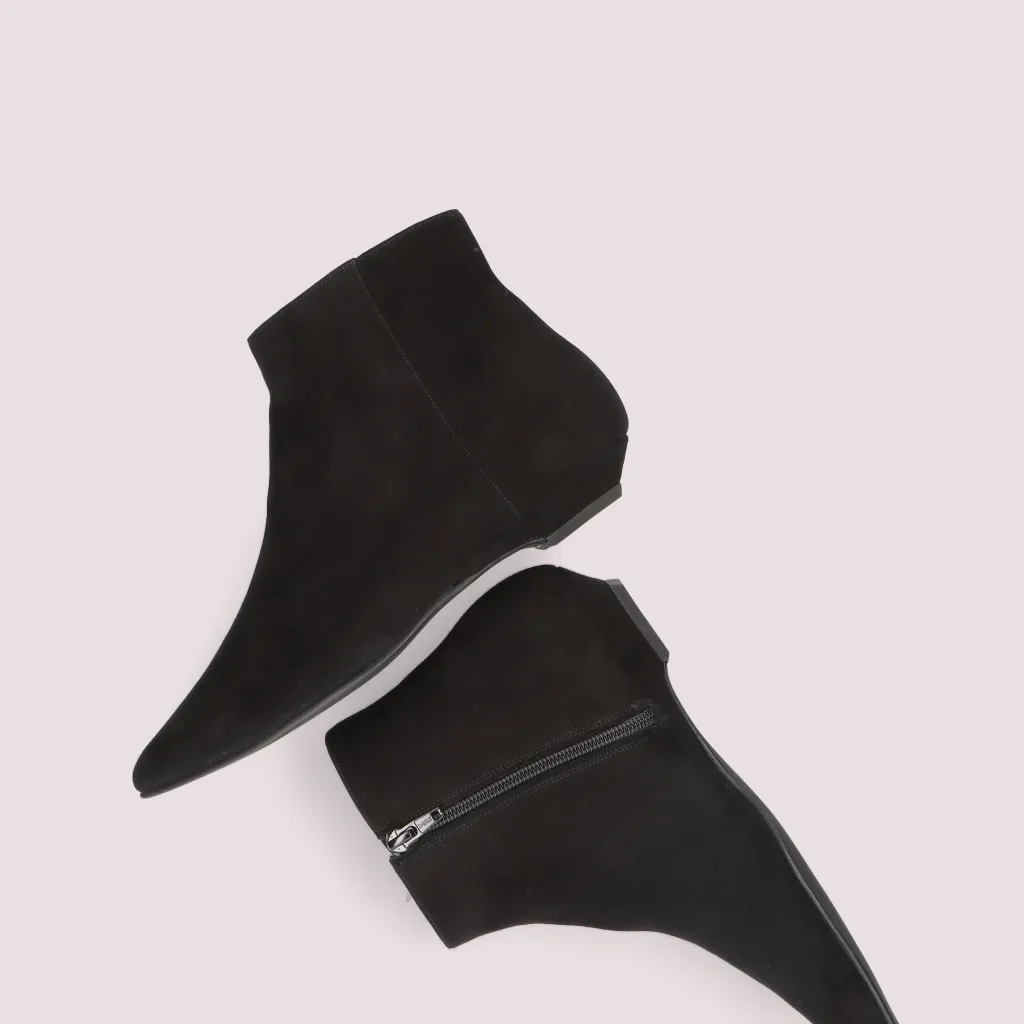 מגפון מזמש שחור עם ריץ’ רץ’. עם עקב בגובה של 2 סמ’ וחרטום שפיץ. בדגם זה מומלץ להזמין חצי מידה יותר מהרגיל
