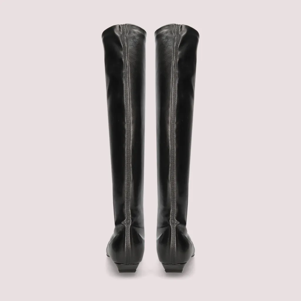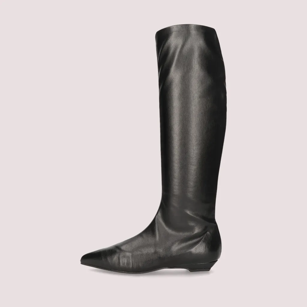 מגף מטקסטיל סטרץ’ מיוחד בצבע שחור, עם חרטום שפיץ ועקב בגובה 2 ס”מ צועק קלאסיקה, קלאסיקה, קלאסיקה!