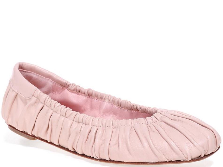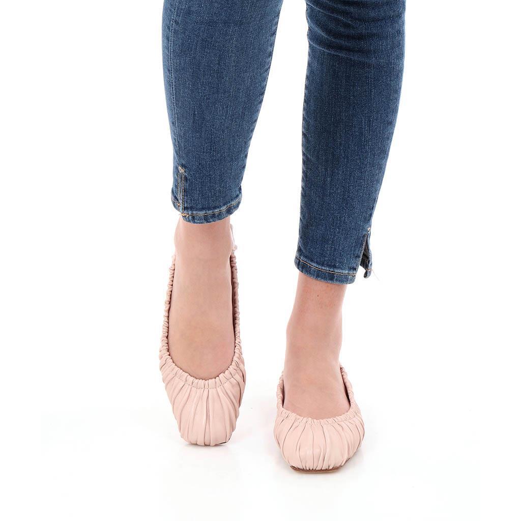 נעלי בלרינה מעור בצבע ניוד עשר בקפלים וחרטום קטום