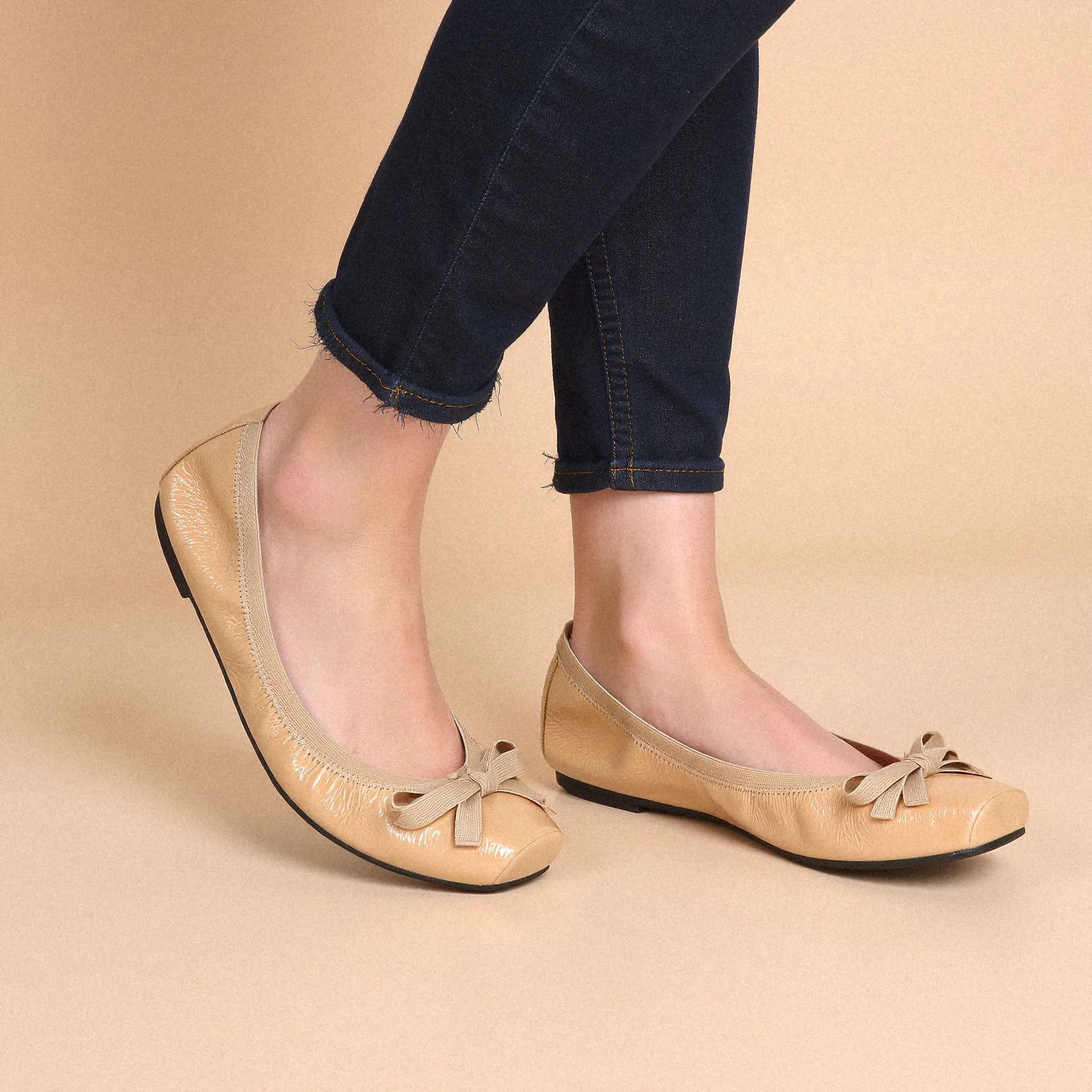 נעלי בלרינה מעור לק מקומט ניוד עם גומי תואם מתאימות לנשים שאוהבות נעליים נטרליות ועדינות שמתאימות למגוון לוקים