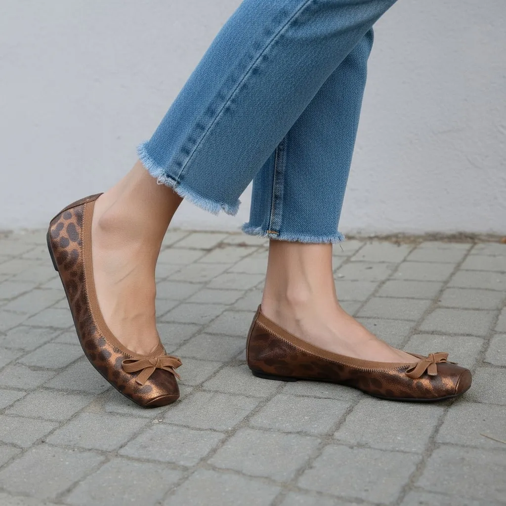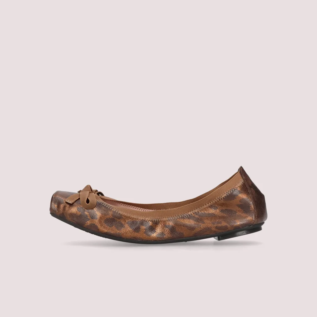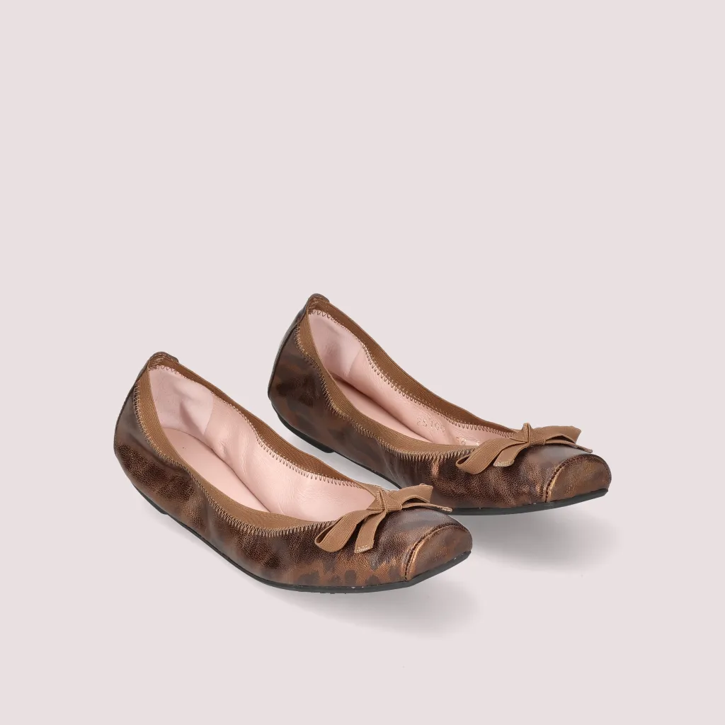נעלי בלרינה מעור בהדפס זברה חום שחור עם גומי חום