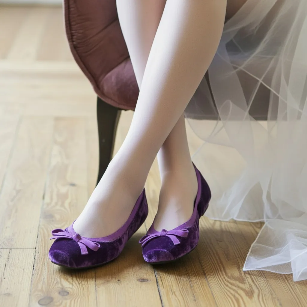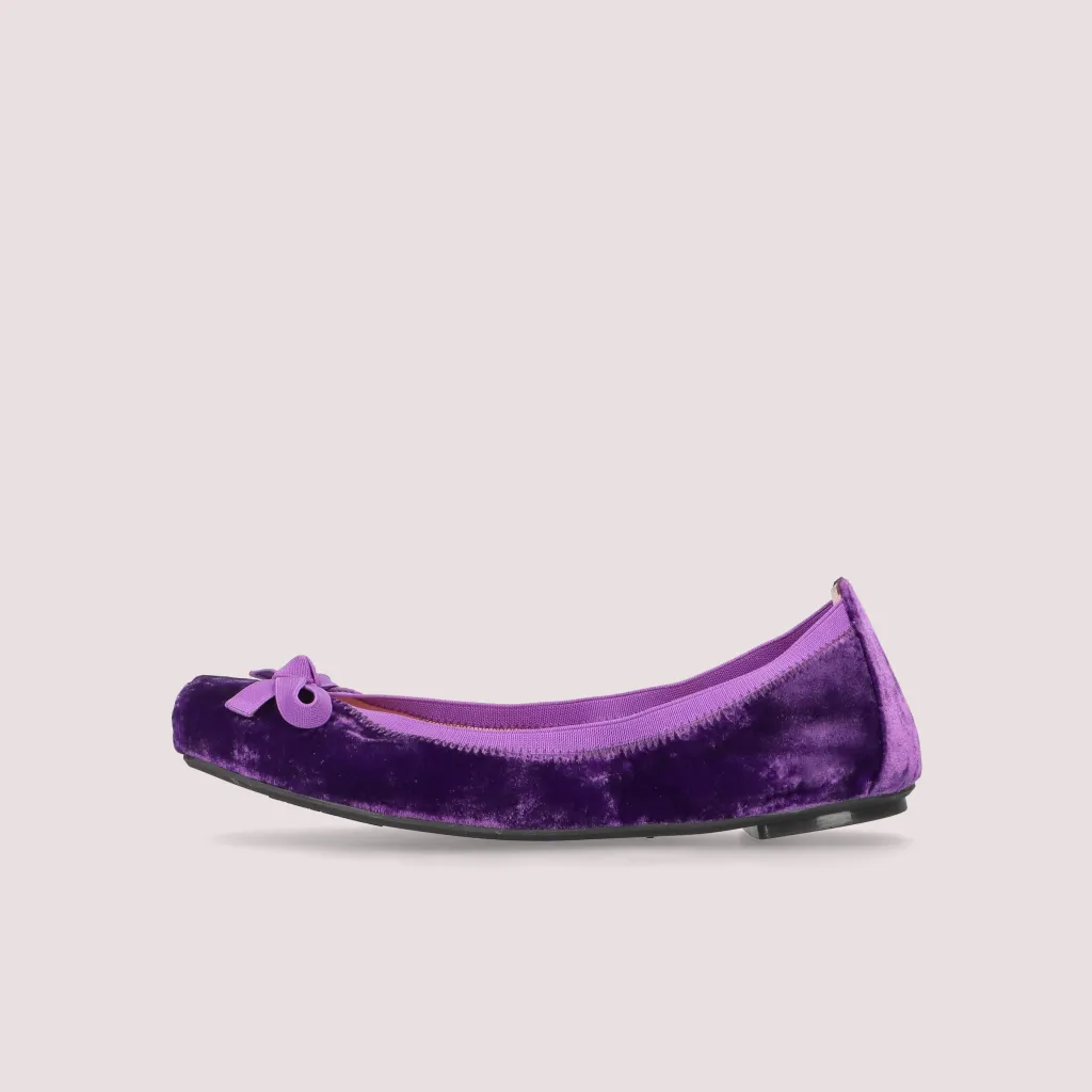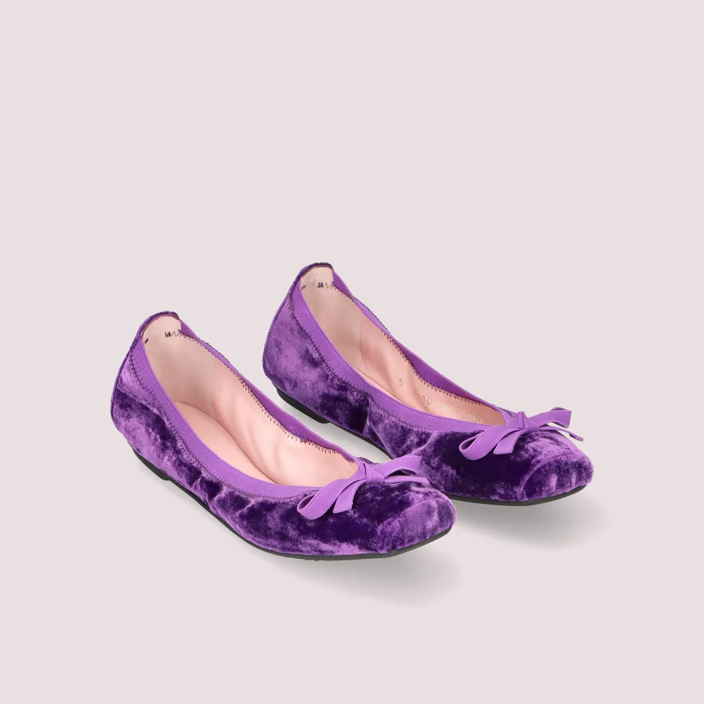 נעלי בלרינה מקטיפה בצבע סגול מלכותי עם גומי תואם יבטיחו מראה מיוחד שיגרום לכן לבלוט בכל מקום