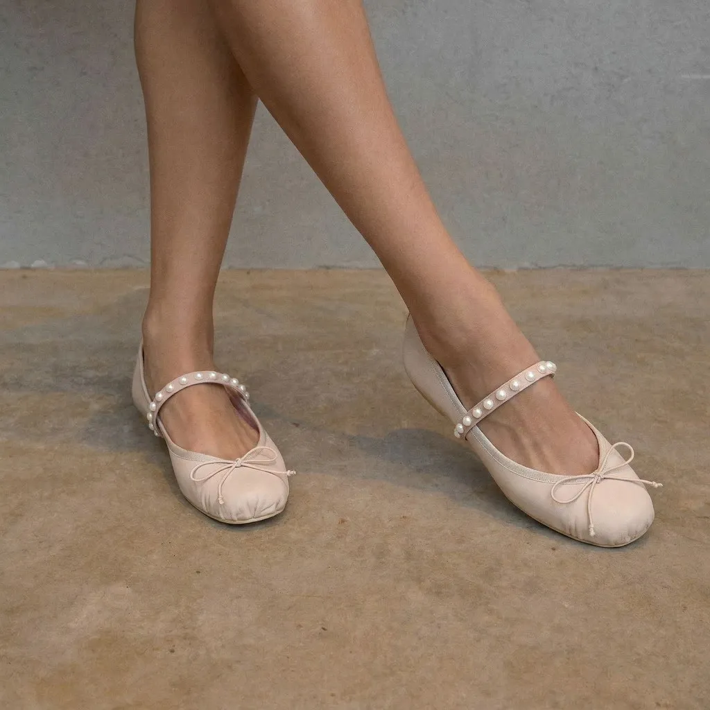 נעלי בלרינה מעור מט ניוד, עם סרט פפיון תואמם ורצועה המשובצת בפניני סברובסקי – נעל בובה שכל אחת צריכה שתהיה לה