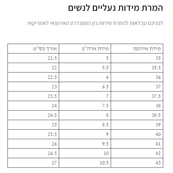 נעליים שנרכשו בסייל/הנחה ניתן להחליף או לקבל זיכוי כספי עד 5 יום מתאריך קבלתן.