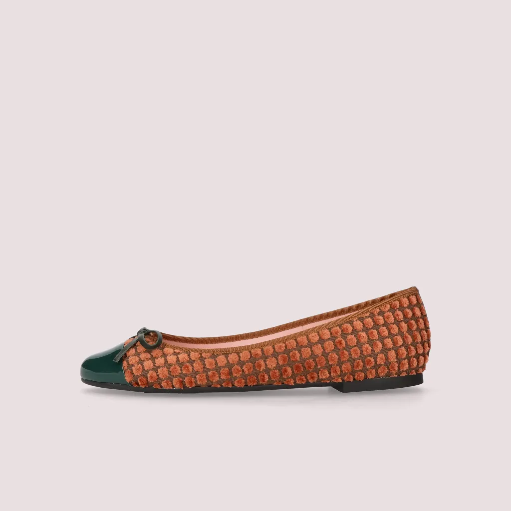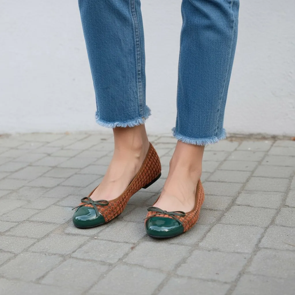 נעלי לאופרס מזמש בצבע חמרה ודוגמאת פרח לוטוס מאבנים קטנות מנצנצות מקדימה וחרטום שפיץ