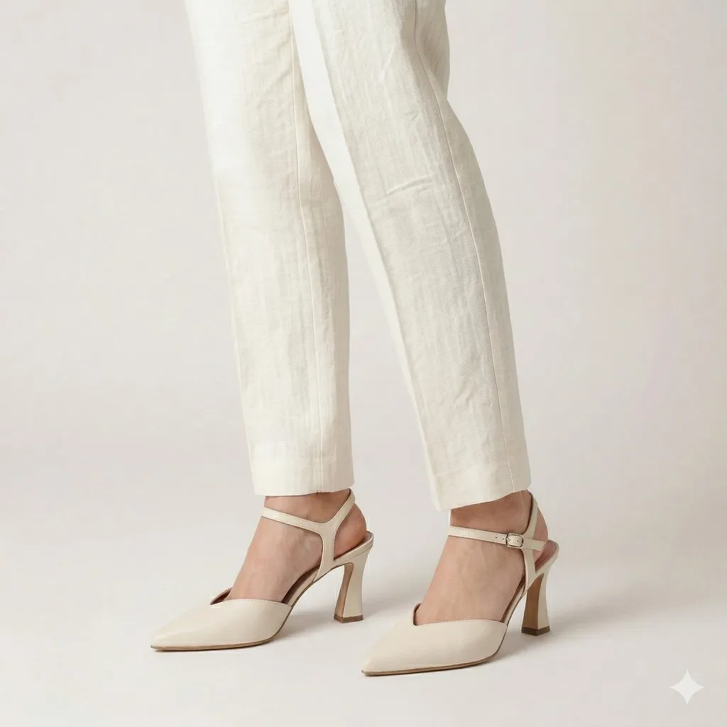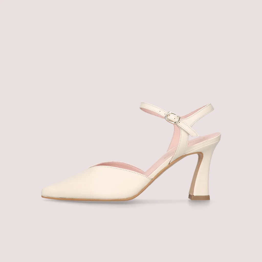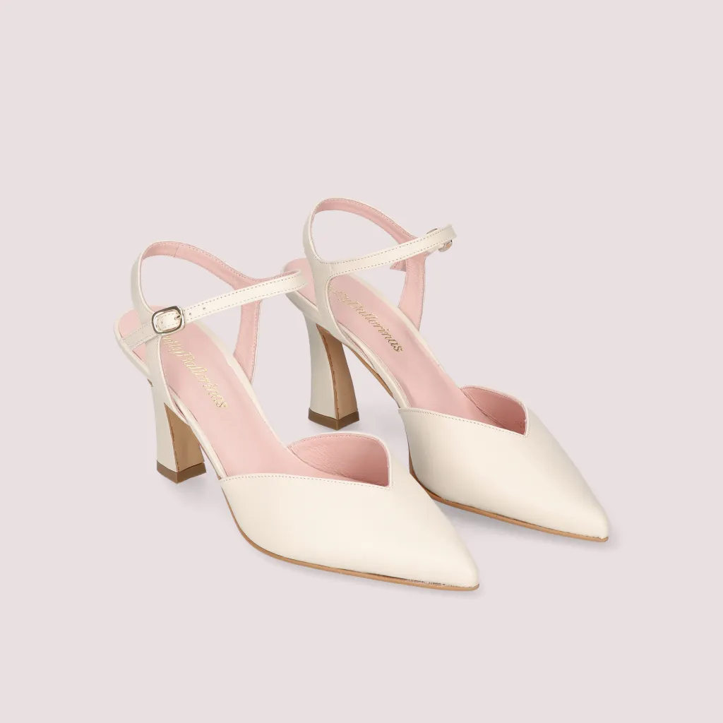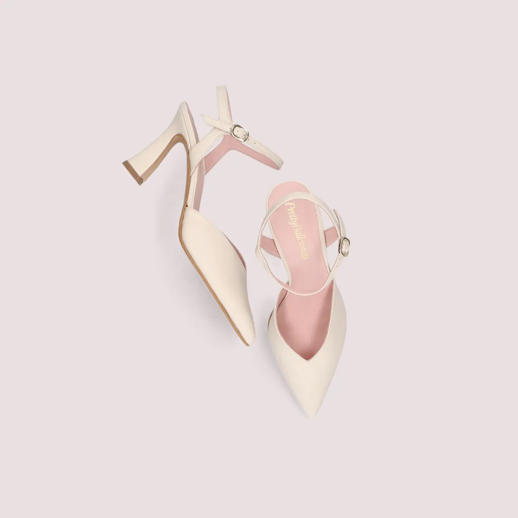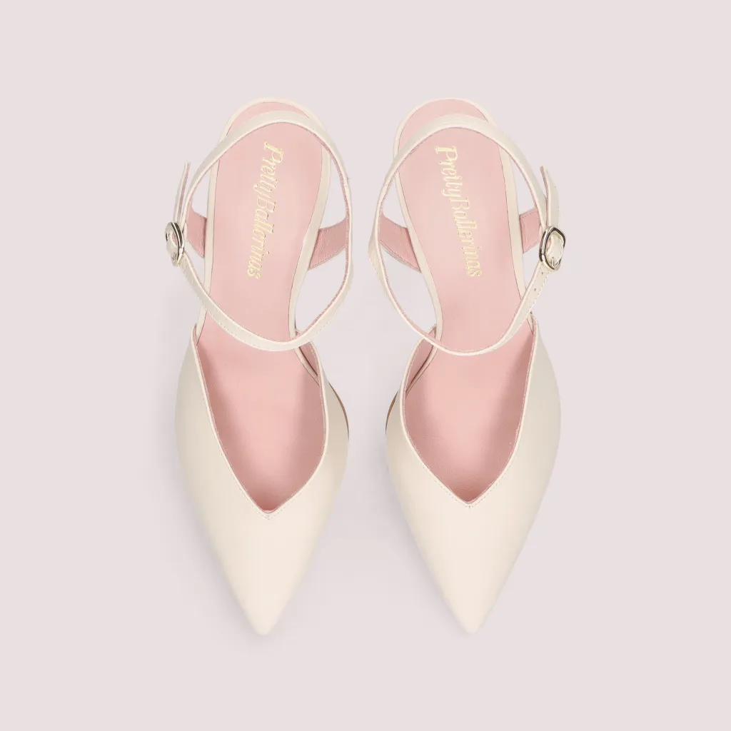 נעלי בלרינה מעור מט בצבע פנינה עם עקב בגובה של 7 סמ’ וחרטום שפיץ