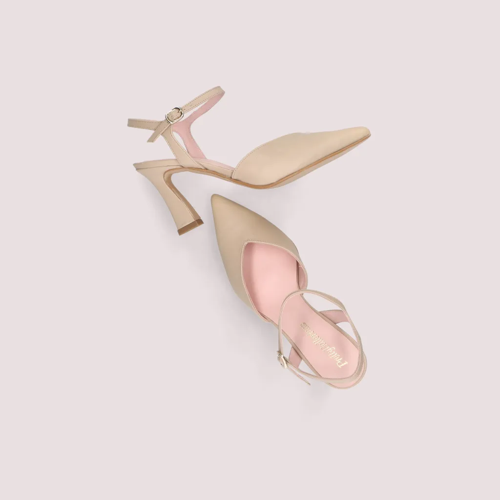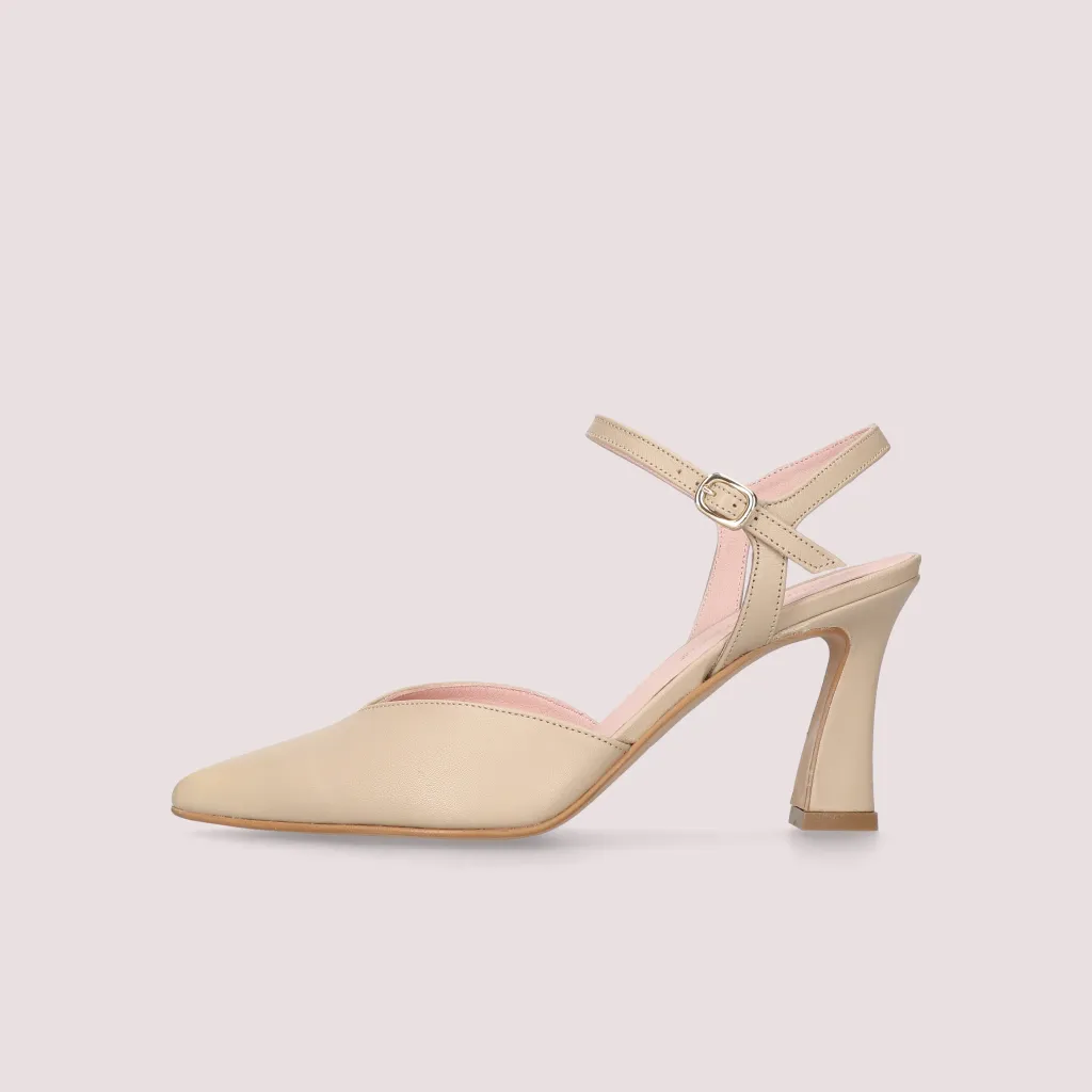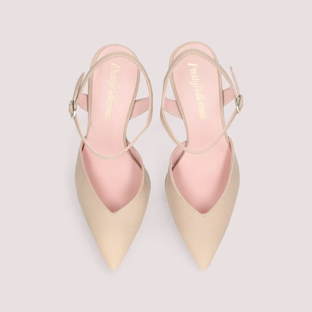נעלי בלרינה מעור מט בצבע בז’ עם עקב בגובה 7 סמ’ וחרטום שפיץ