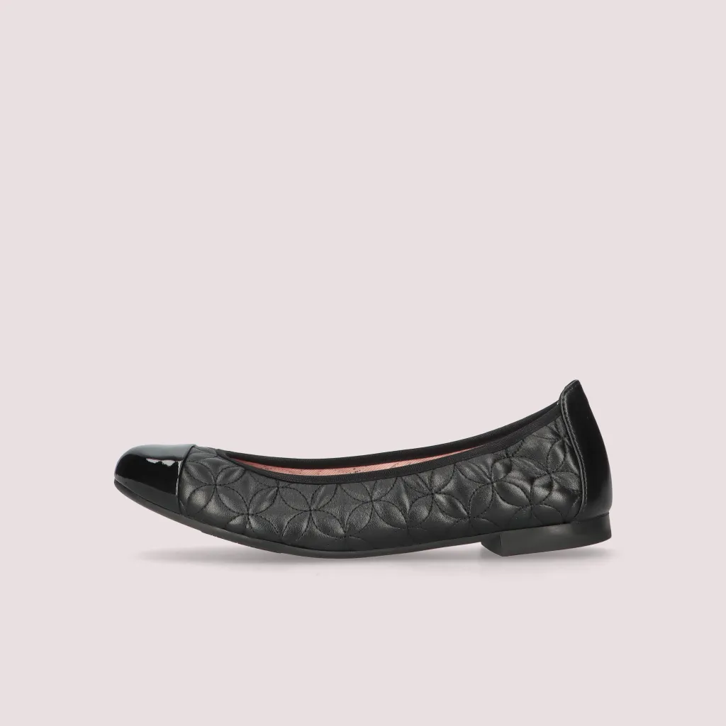 נעלי השירלי שלנו מעור שחור עם תיפורי פרחים בצבע שחור וחרטום שחור הן נעליים עם נוכחות שיגרמו לכל צעד שלכן להיות מלא סטייל